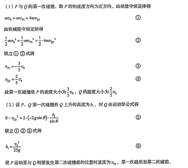 (1)求P与Q第一次碰撞后瞬间各自的速度大小Vp1、VQ1;