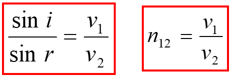 折射定律: 入射线、法线、折射线在同一平面内,入射线与折射线分居法线两侧.入射角的正弦跟折射角的正弦之比等于波在第一种介质中的速度跟波在第二种介质中的速度之比。