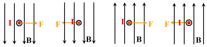 安培力方向的判断(•表示方向向外,x表示方向向里)